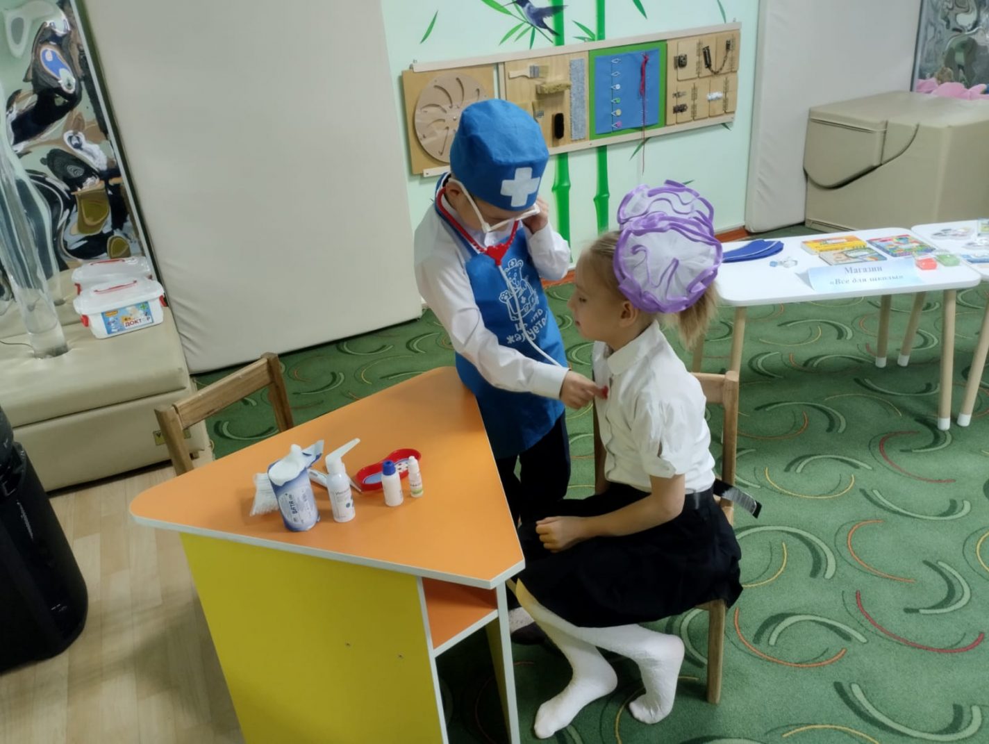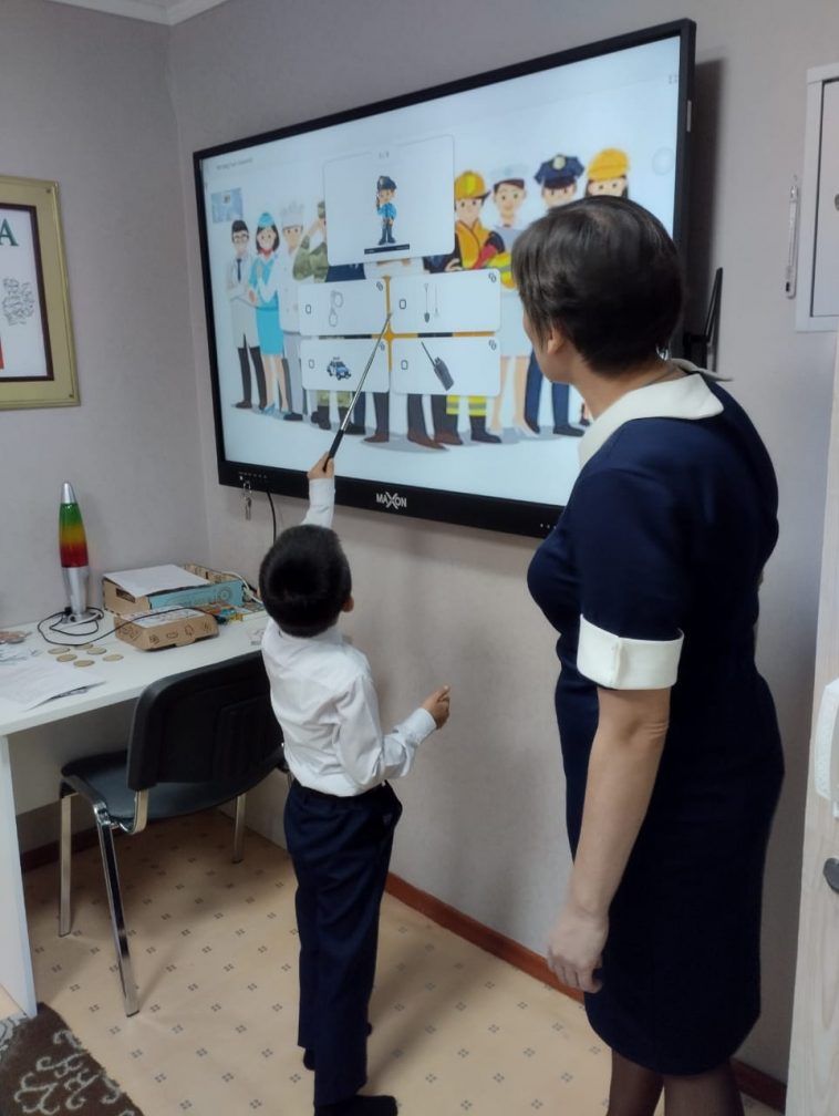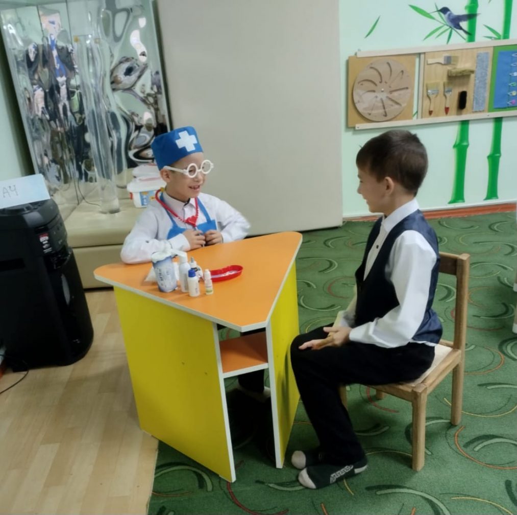 Сабақ барысында балалар «Мамандықты тап», «Сиқырлы дорба», «Кімнің аспабы», «Төртінші артық» сияқты ойындар мен жаттығуларды ынтамен орындады. Одан кейін студенттер міндеттер жүктеп, қажетті құрал-жабдықтарды дайындап, «Дәрігерде» және «Дүкенде» сияқты рөлдік ойындарға қатысты.