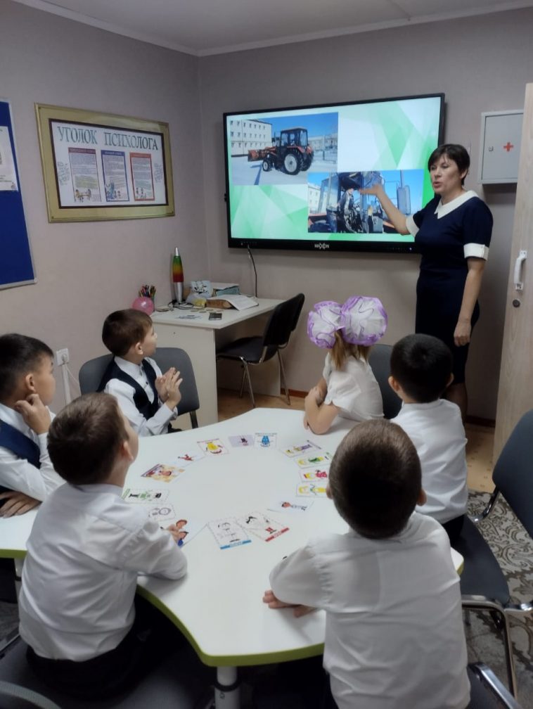 Бастауыш сынып оқушыларына арналған онкүндік аясында 2-сынып оқушыларымен «Мамандықтың бәрі маңызды» тақырыбында рөлдік ойын түрінде сабақ өткізілді.
