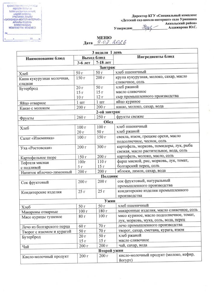 Ас мәзірі 9 ақпан