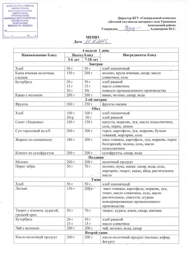 Ас мәзірі 22 желтоқсан