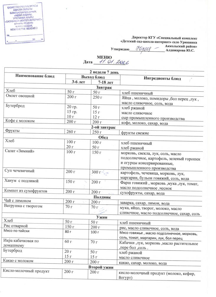 Ас мәзірі 11 қантар