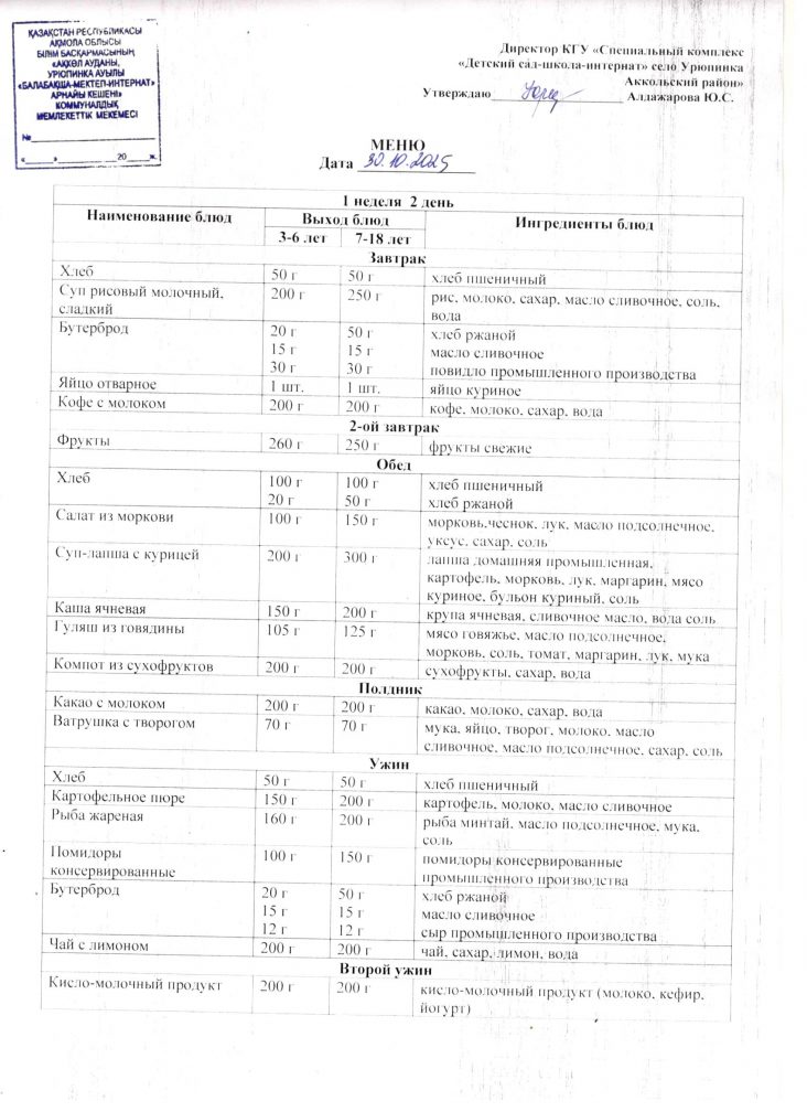 Ас мәзірі 30 қазан