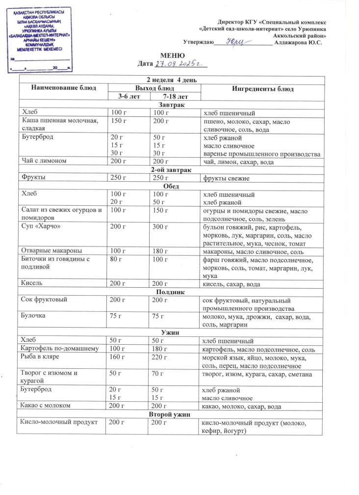 Ас мәзірі 27 қыркүйек