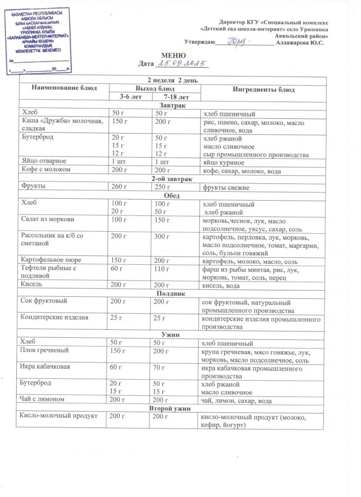 Ас мәзірі 25 қыркүйек