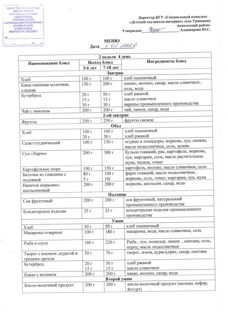 Ас мәзірі 5 ақпан