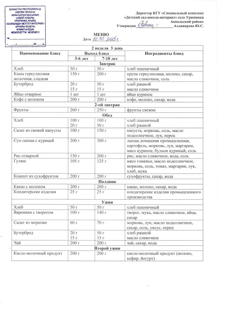 Ас мәзірі 10 қазан