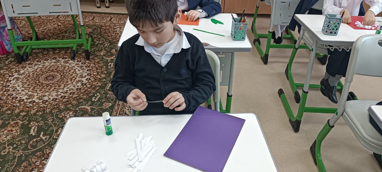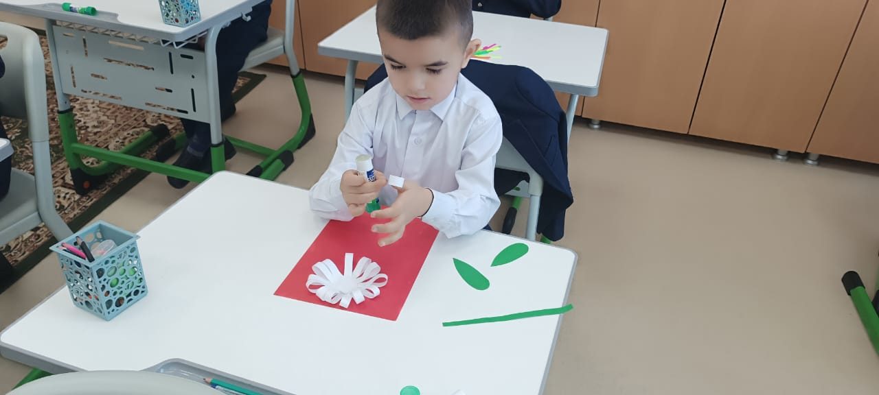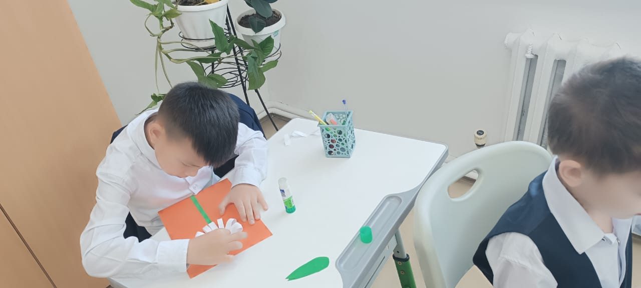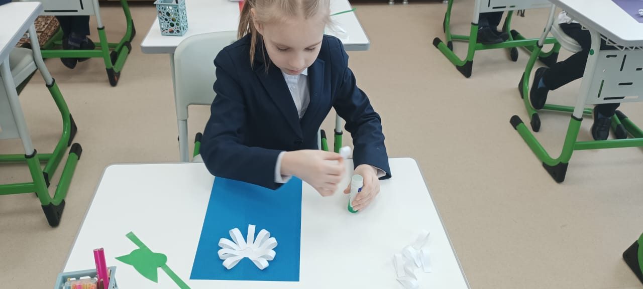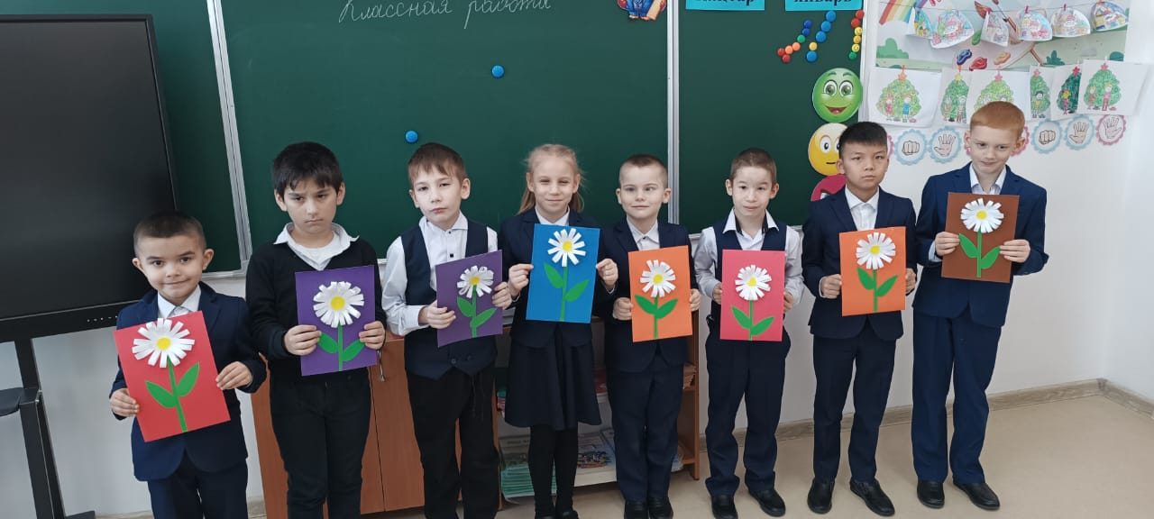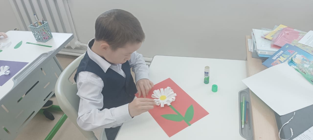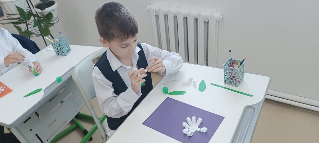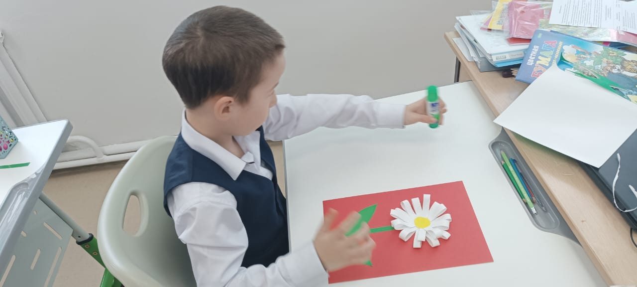 Екінші сынып оқушылары өздерінің қолөнер сабағында қиял мен қолөнер әлеміне шомылды. Олар «Ромашка» деп аталатын аппликациясын жасады. Ақ жапырақшалармен қоршалған ашық сары орта – балалар дайын қолөнерді осылай көрді. Содан кейін көп еңбекті қажет ететін жұмыс келді: жолақтарды кесу, жапырақшаларды желімдеу, сабақ пен жапырақтарды кесу. Балалар көп жұмыс істеді, кейбіреулері өз беттерімен, кейбіреулері көмектесті, бірақ барлығы тапсырманы орындады. Түймедақ алқабы! Бұл сізді жазға сүңгіңіз келеді!
