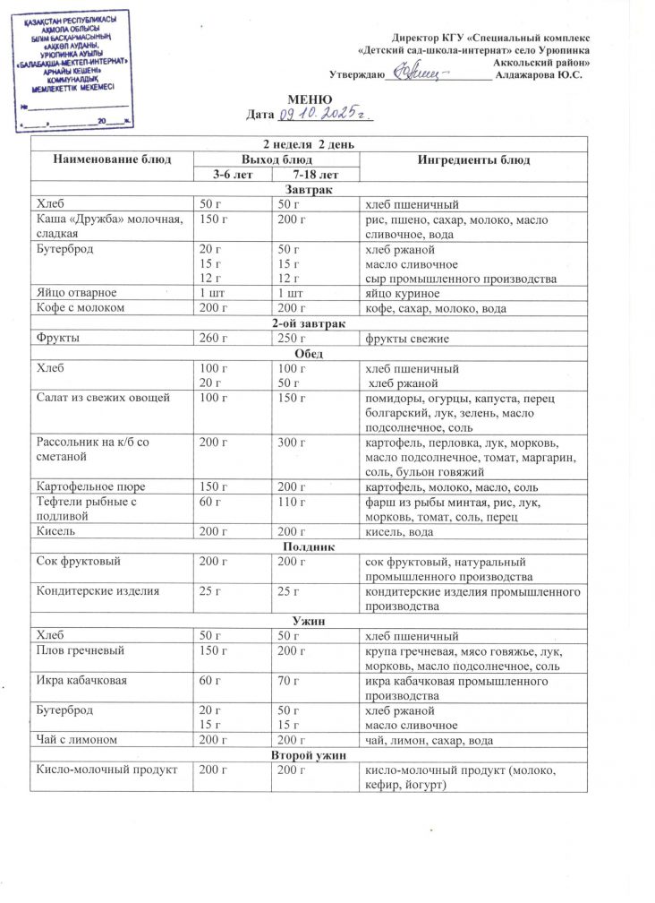 Ас мәзірі 9 қазан