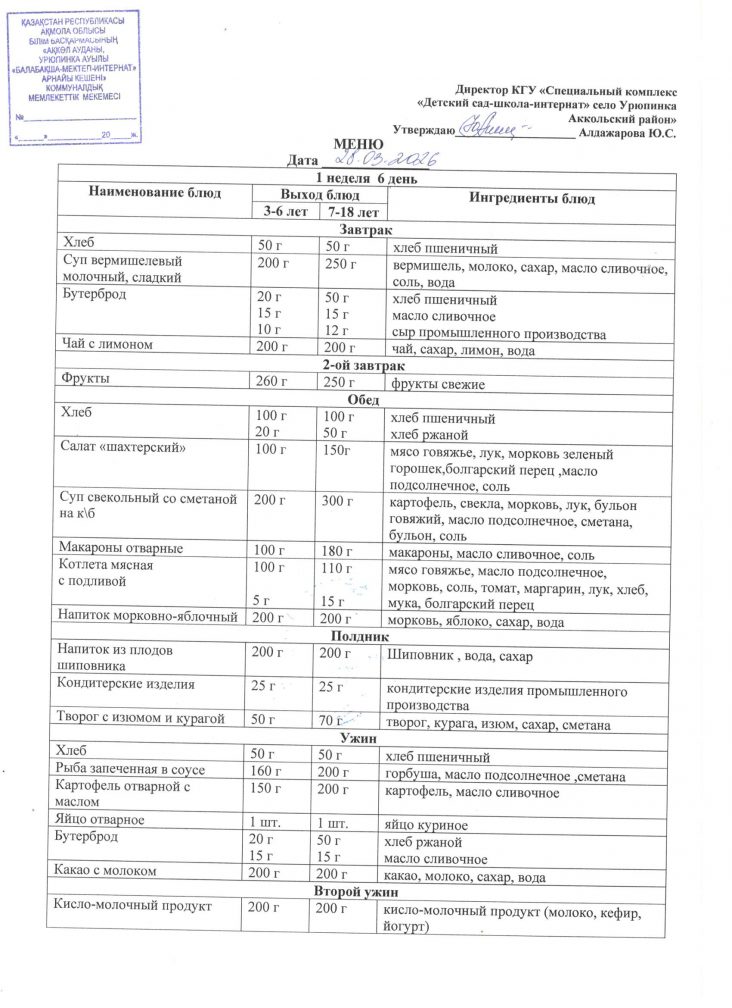 Ас мәзірі 28 наурыз