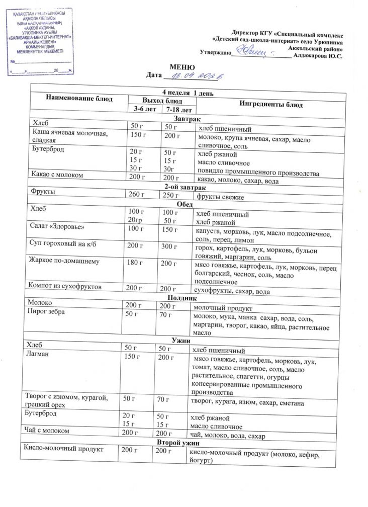 Ас мәзірі 13 сәуір