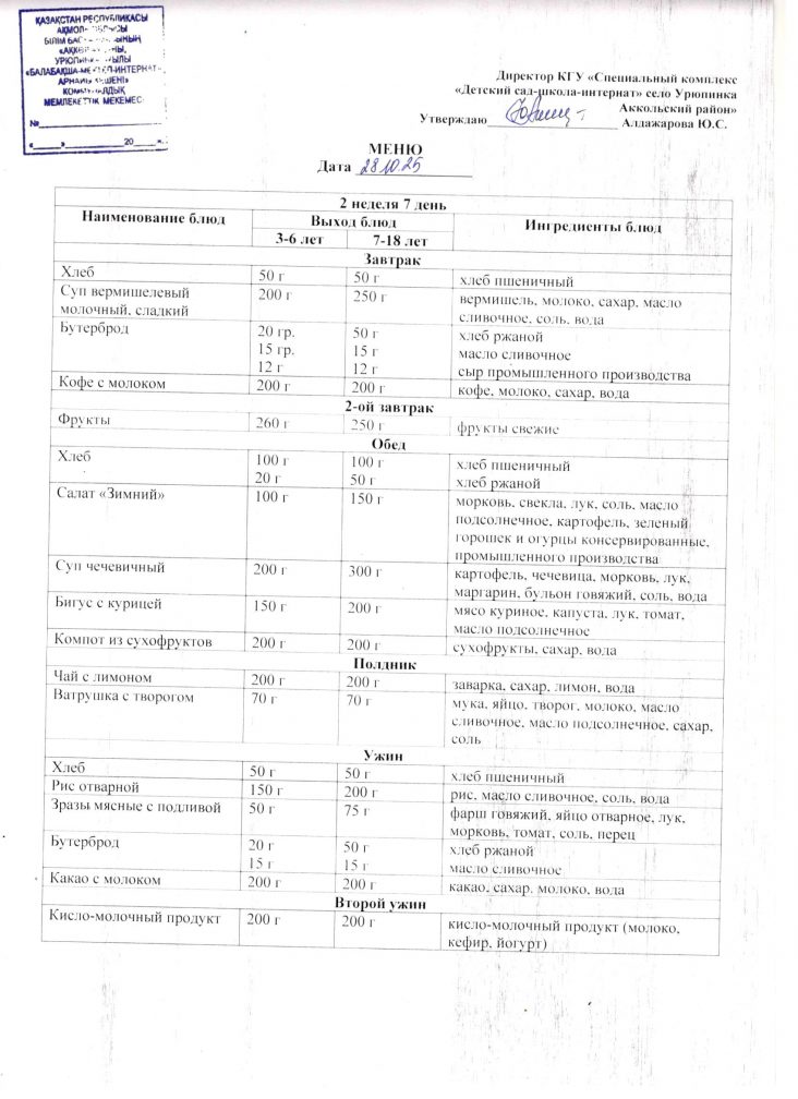 Ас мәзірі 28 қазан