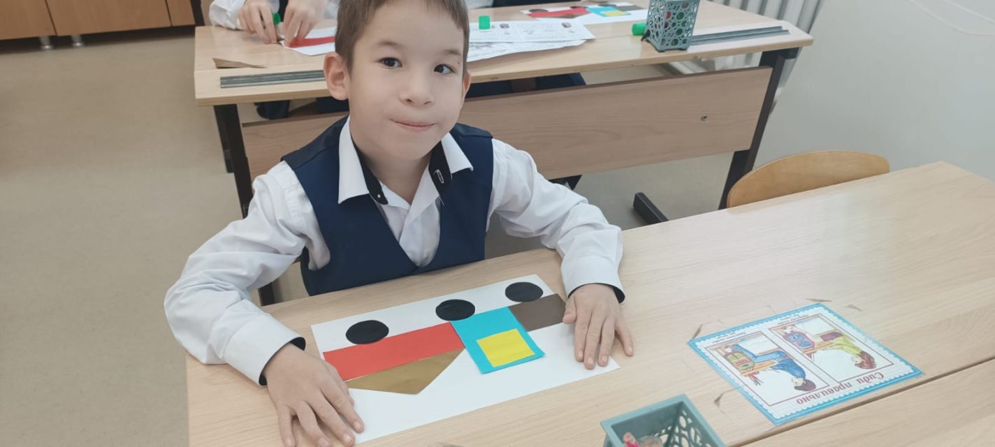 Қолөнер сабағында 2-сынып оқушылары «Жүк машинасы» атты геометриялық аппликация жасады. Тақырып бойынша презентацияны тамашалап, жүк көліктерінің қандай көлік түрлерімен жүретінін білді. Олар жүк көлігінің бөлшектерін талдап, оны геометриялық пішіндерден құрастырды, сол арқылы бұрын математика сабағында өткен геометриялық пішіндерді қайталады. Оқушылар жүк көлігін шынайы етіп көрсетуге тырысты.