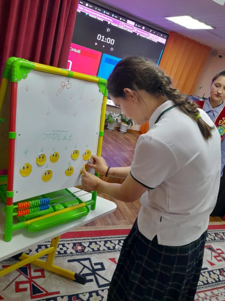 Сабақта әр түрлі жұмыстар жүргізілді: «Сәттілік дөңгелегі» атты интерактивті ойын, «Сөйлем құрастыру» жаттығуы, түсіндірмелі және философиялық сөздіктермен жұмыс, ойлау, зейін, сөйлеу дағдыларын дамытуға арналған тапсырмалар. Бұл әртүрлі жұмыстар балалардың қызығушылығын арттырып, танымдық белсенділігін арттырып, оқуын жақсартуға көмектесті.