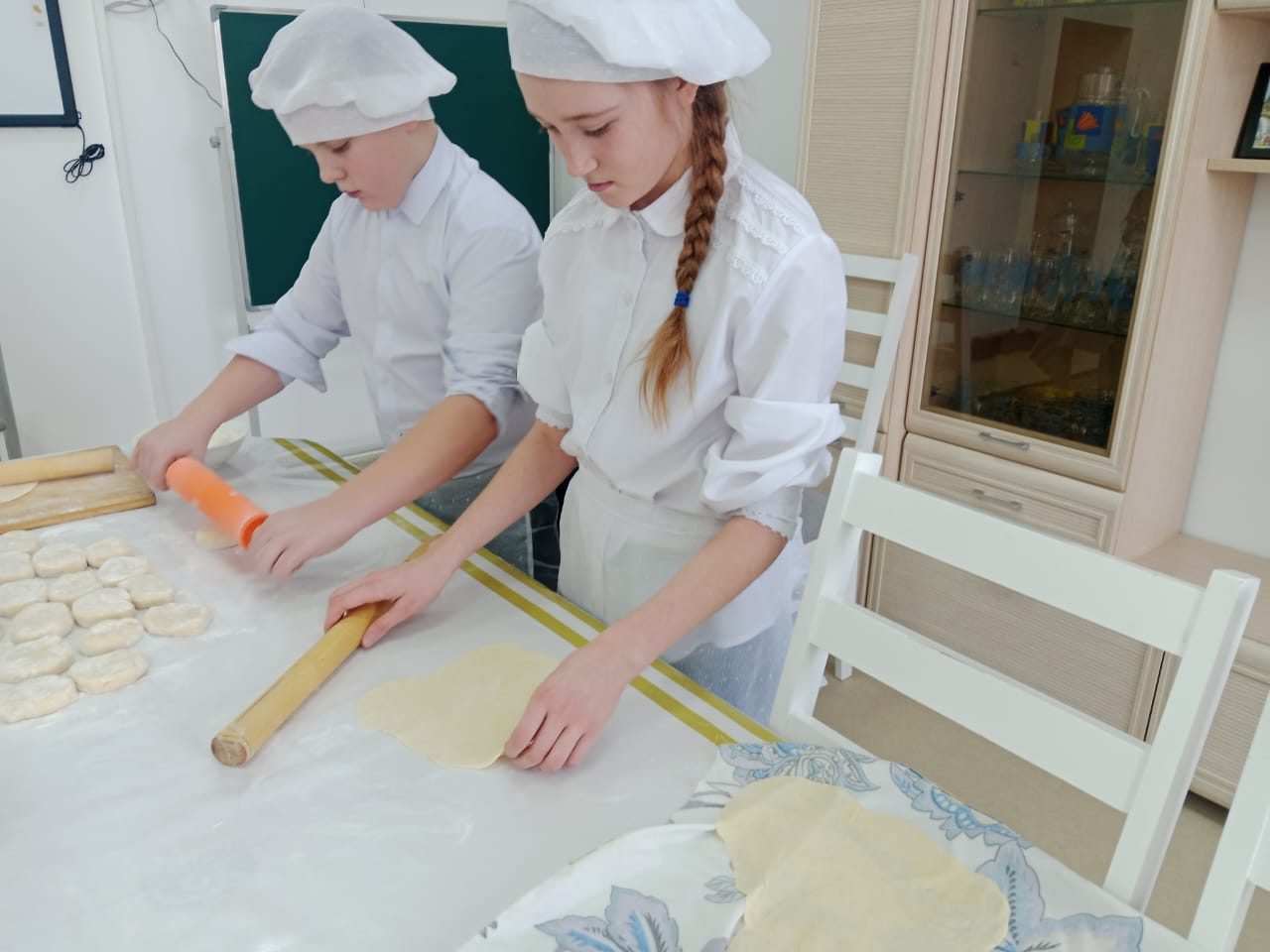 ӘКБ сабағында 5 сынып оқушылары қазақтың ұлттық тағамы «Құдайнан-шелпекпен» таныстырылды. Оның қандай ингредиенттерден жасалатынын, шелпекті пісірудің дәстүрлі әдістерін біліп, ас үйде жұмыс істеу кезінде жеке бас гигиенасы мен қауіпсіздік шараларын қарастырды.