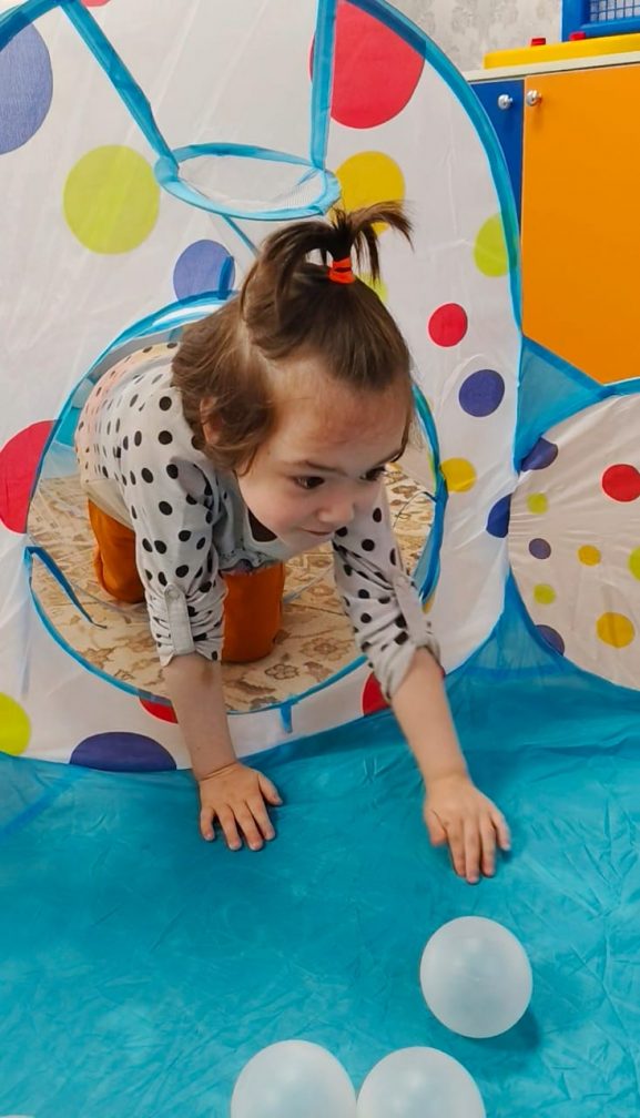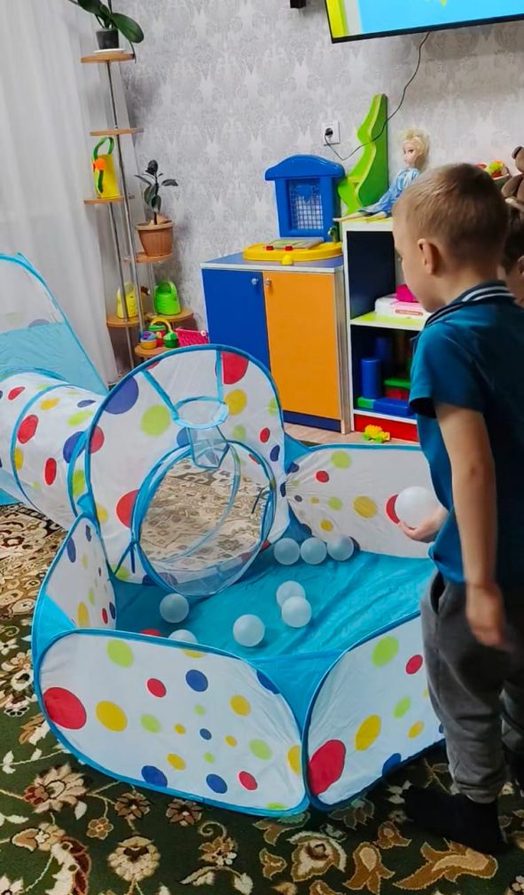 Ойын әрекеті кезінде балалар белсенділік, бастамашылық, дербестік танытады. Олар сырғанақпен сырғанап, туннель бар шатырда ойнағанды және бір-бірімен араласқанды ұнатады.