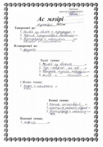 Меню 11 декабря