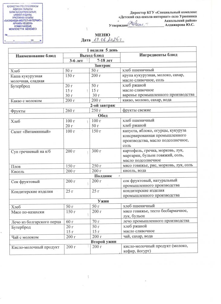 Меню 19 июня