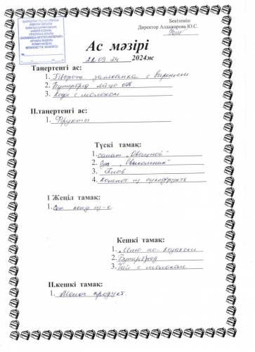 Меню 22 сентября