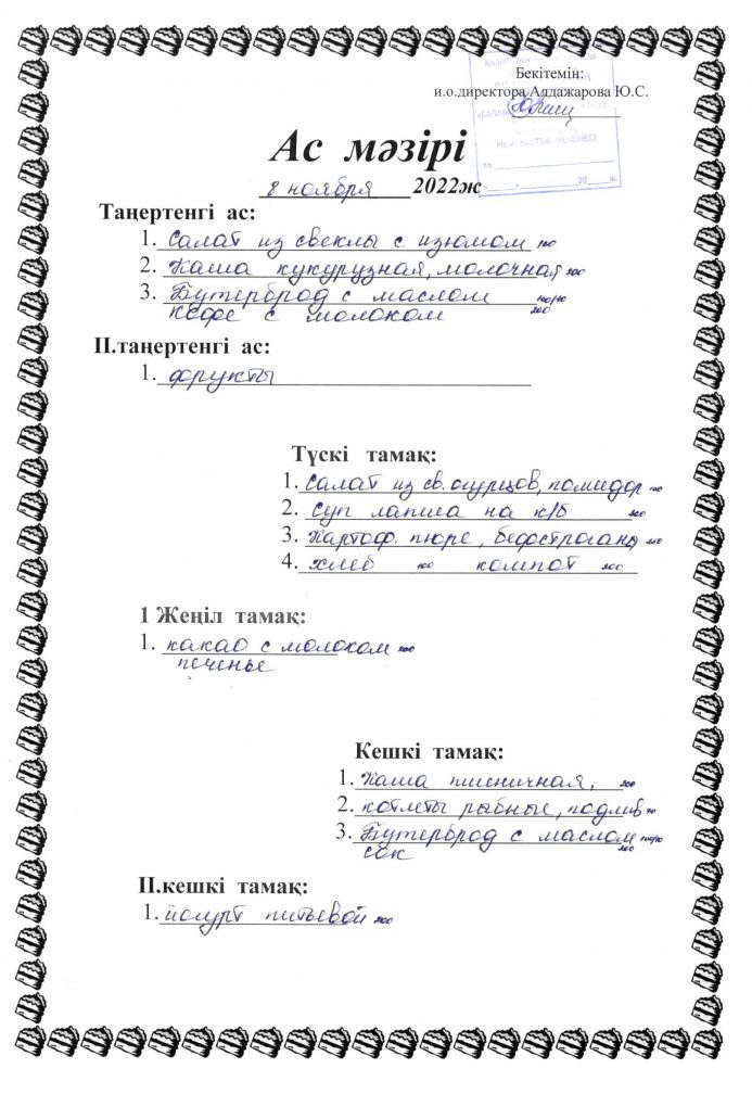 Меню 8 ноября