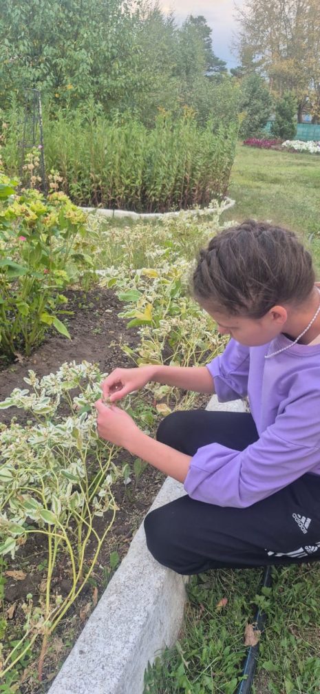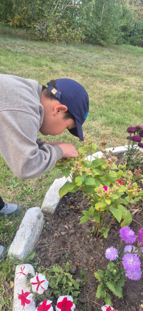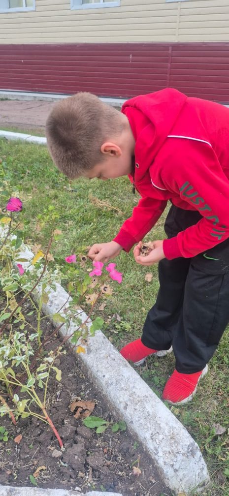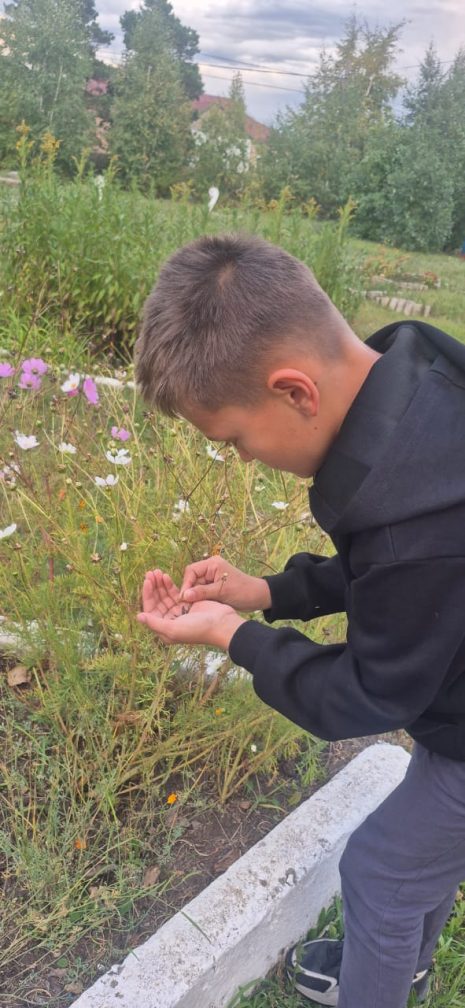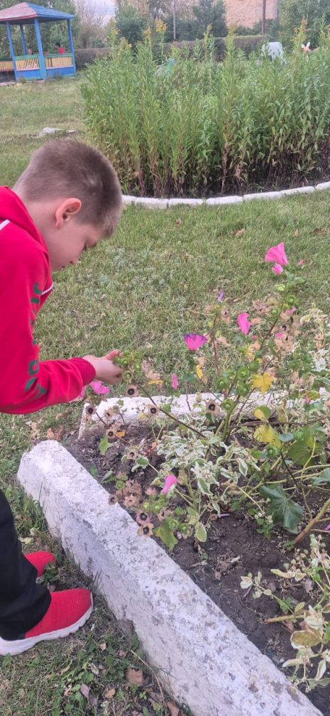 Арнайы кешендегі балалар көктем-жаз мезгілінде серуендеу кезінде гүлзардағы гүлдерді бақылап, оларға күтім жасады. Содан кейін күз келді, тұқым жинау уақыты. Балалар тәрбиешімен бірге үлкен ынтамен бақшада келесі жылы егу үшін гүл тұқымдарын жинап жұмыс істеді.