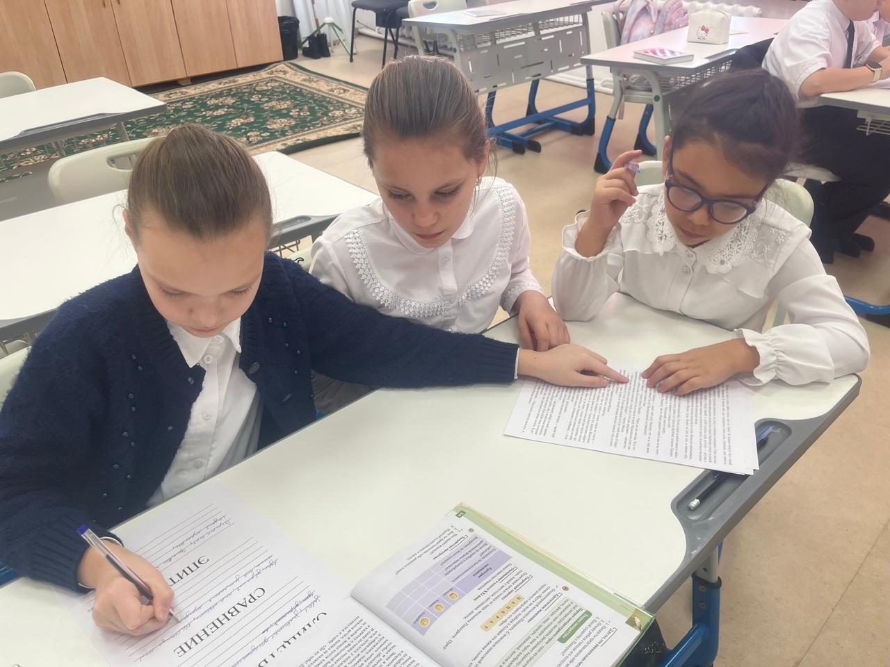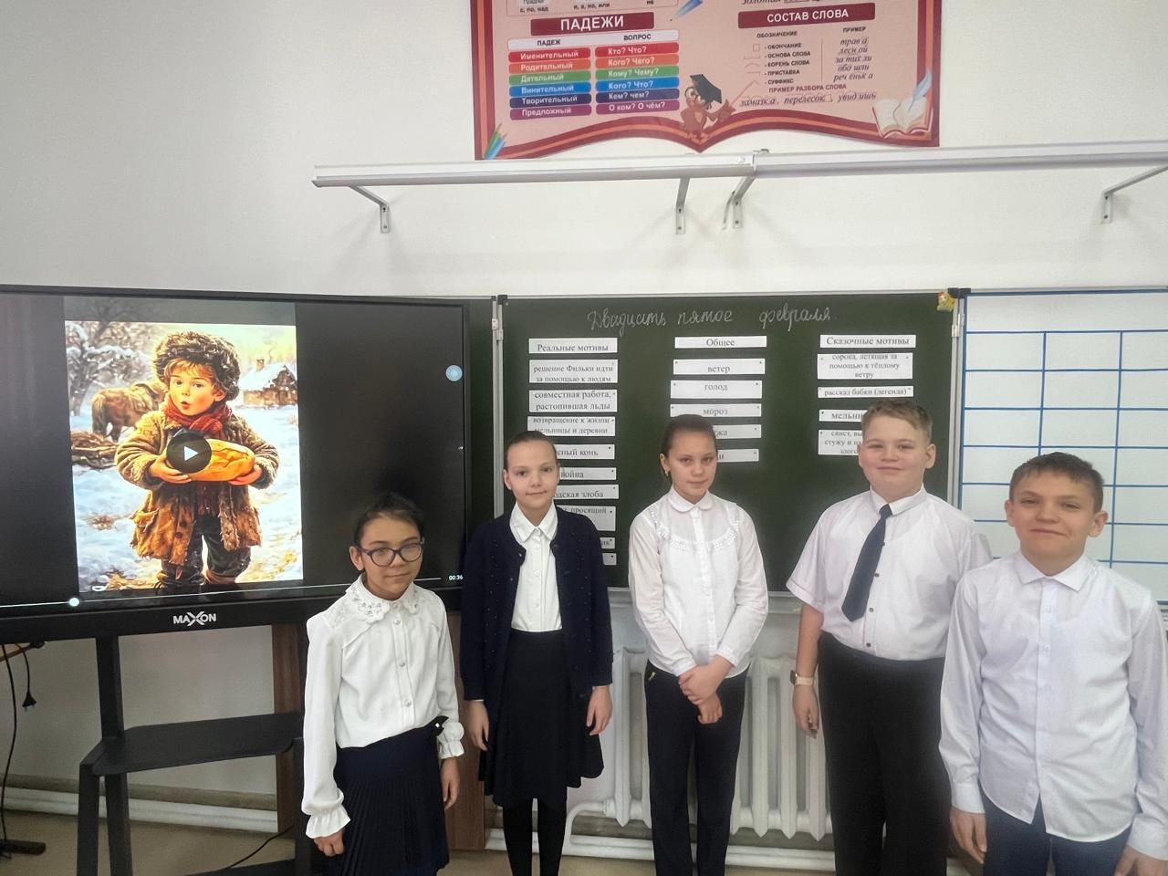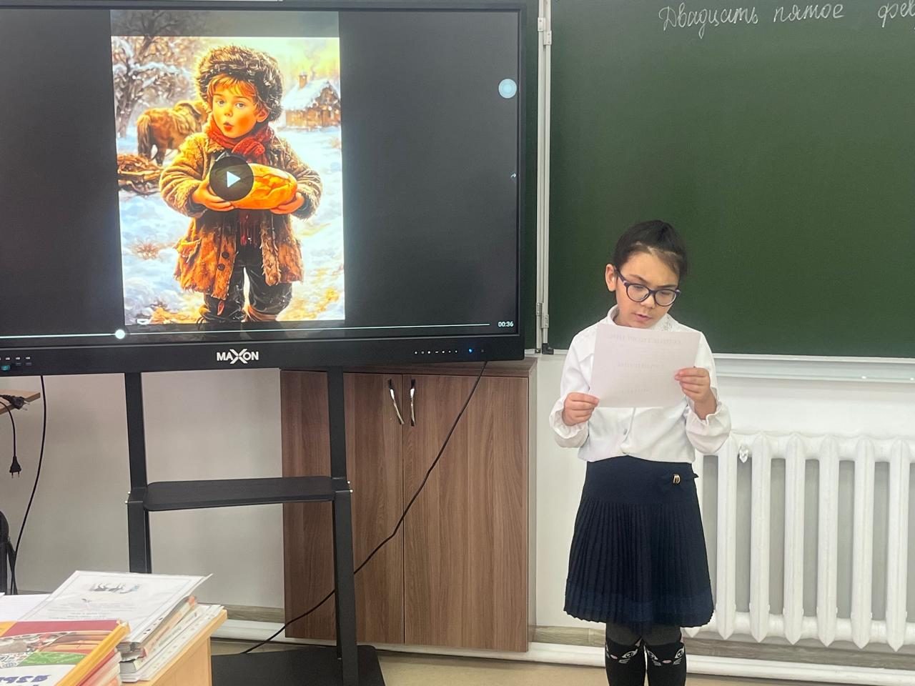 Бесінші сыныпта К. Паустовскийдің «Жылы нан» ертегісіне негізделген орыс әдебиеті сабағы өтті. Сабақ сәттілік тілеумен басталды. Әрі қарай олар әңгімедегі шынайы өмір мен ертегі мотивтерін анықтауға тырысты. Оқушылар берілген сөздер мен сөз тіркестерін дұрыс сәйкестендіруі керек болды. Келесі кезең топтық жұмысты қамтыды: оқушылар мәтіннен эпитеттерді, теңеулерді және тұлғаландыруларды іздеді. Оқушылар біраз қиындықпен көркемдік құралдарды анықтап, тапқан мысалдарын оқыды. Олар сондай-ақ әңгімеге негізделген суреттермен жұмыс істеді, онда олар мәтіннің белгілі бір үзіндісін иллюстрациямен сәйкестендіруі керек болды. Сабақ жақсы ұйымдастырылған, қызықты және білімді болды.