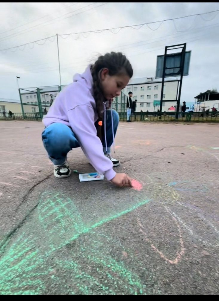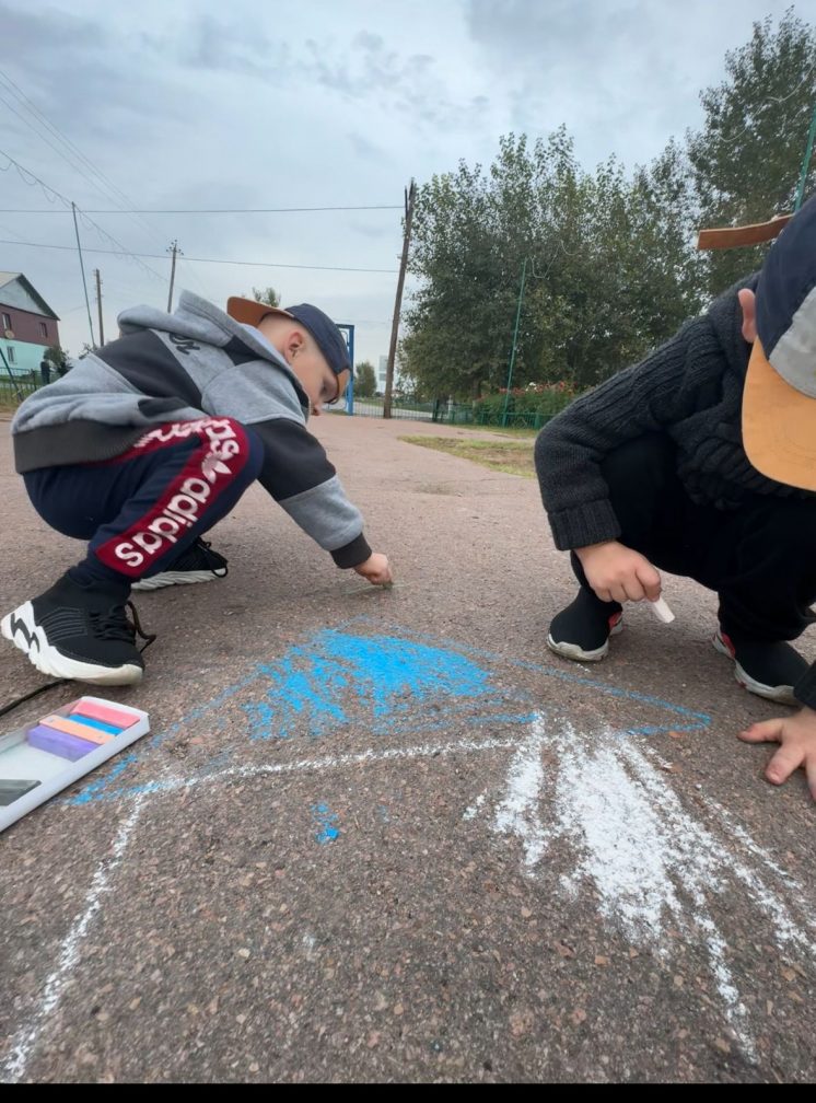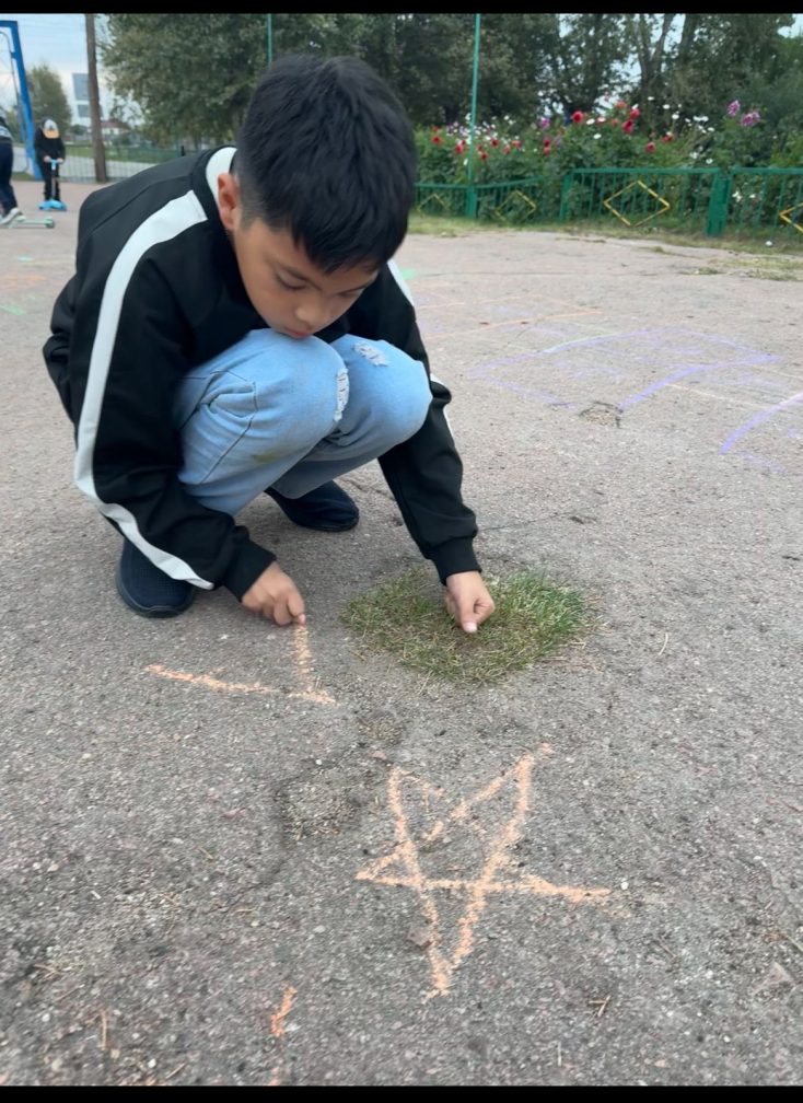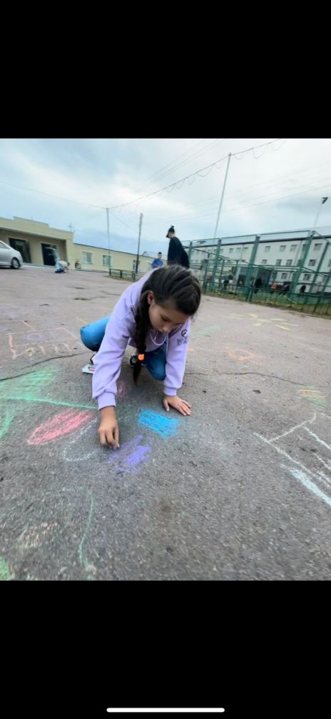 Асфальтта бормен сурет салу – қызықты және шығармашылық әрекет. Топтағы әр бала өзін суретші рөлінде сынап көрді: біреу гүл, біреу ертегі кейіпкерлерін, ал біреу жай ғана жарқын өрнектерді салды.