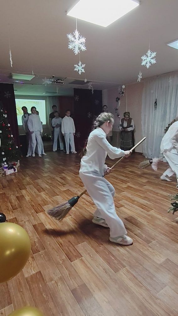 Балалар көңілді Баба Ягамен бірге «Сыпырғыш жарысы», «Мандарин эстафетасы», «Қар кесектері», «Ведмияның сыпырғышы» және басқа да қызықты іс-шараларды қамтитын жарыстар мен белсенді ойындарға қатысты. Балалар мерекелік шеңберде билеп, рождестволық тақпақтар оқыды, шырақшаның нәзік биі ерекше жылулық пен сиқырлы атмосфераны тудырды.