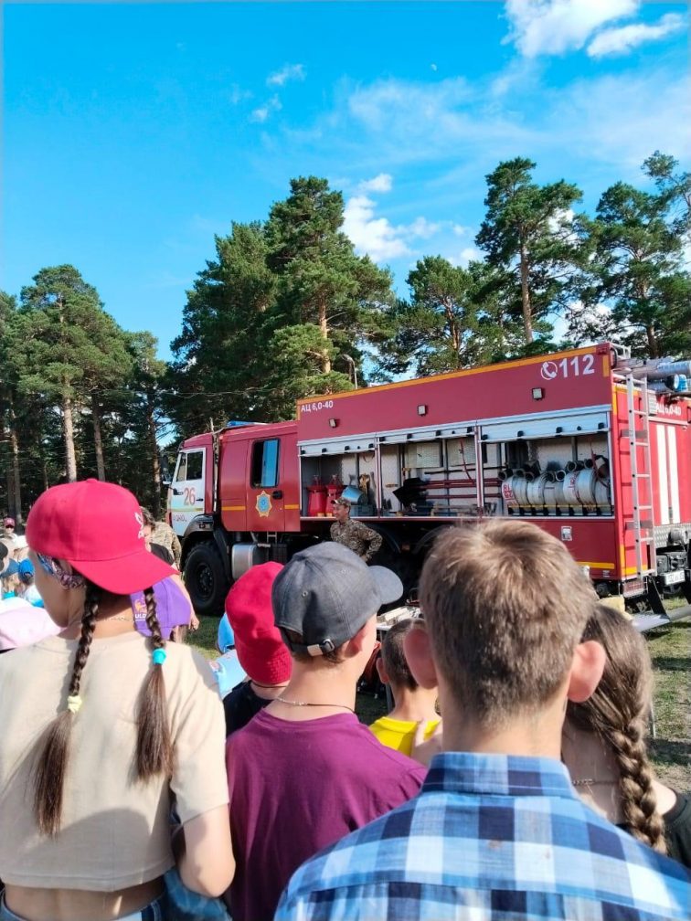 Лагерге нағыз өрт сөндірушілер келді! Олар балалармен өрт қауіпсіздігі ережелері туралы қызықты әрі танымды әңгіме жүргізді. Балалар төтенше жағдайда қалай әрекет ету керектігін, өрт неден туындайтынын және одан қалай сақтану керектігін білді.