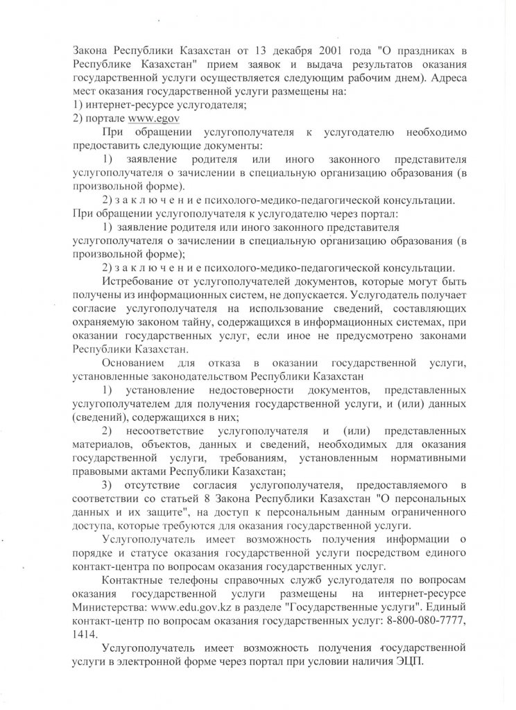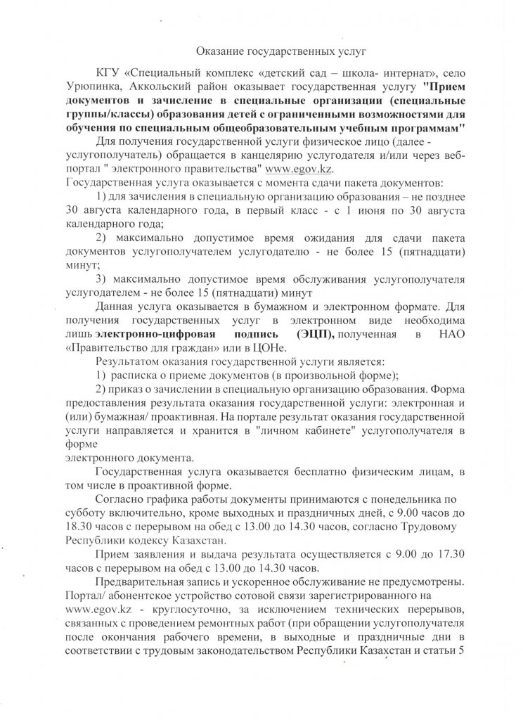 «Мүмкіндігі шектеулі балаларға арналған арнайы жалпы білім беретін оқу бағдарламалары бойынша оқу үшін құжаттарды қабылдау және оқуға қабылдау» мемлекеттік қызметін көрсету