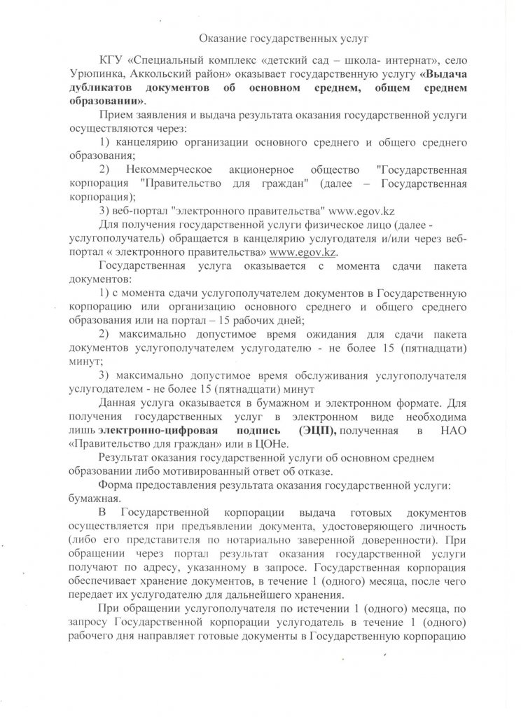 «Негізгі орта және жалпы орта білім туралы құжаттардың телнұсқаларын беру» мемлекеттік қызметін көрсету