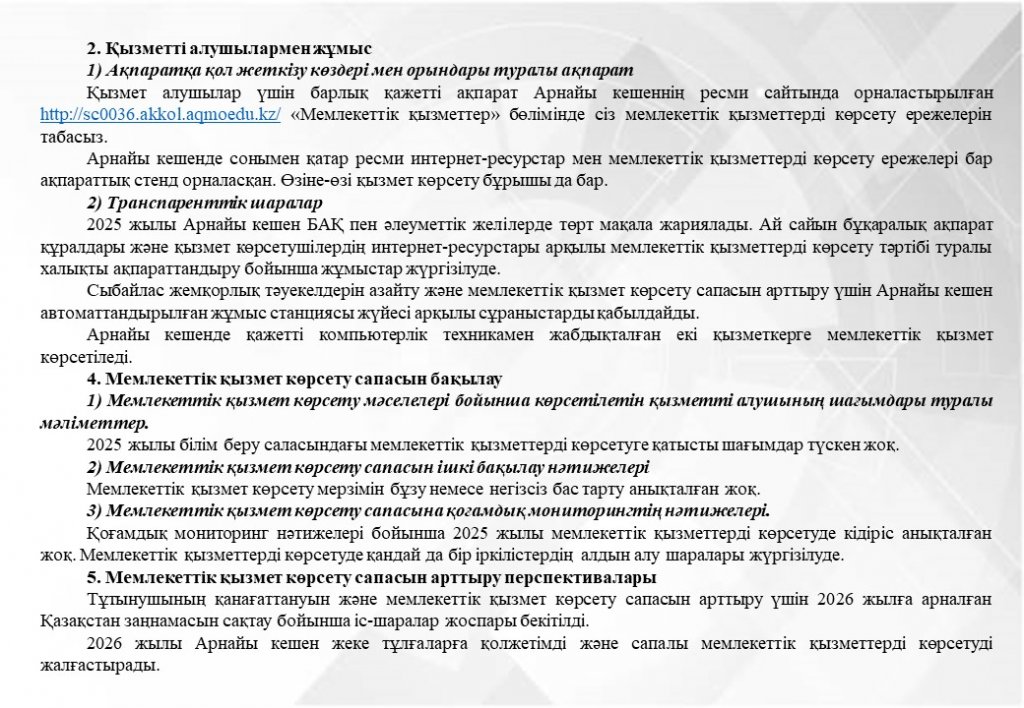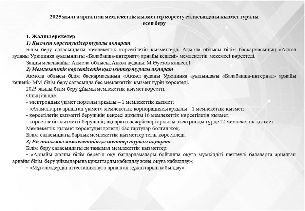 2025 жылға арналған мемлекеттік қызметтер көрсету саласындағы қызмет туралы есеп беру